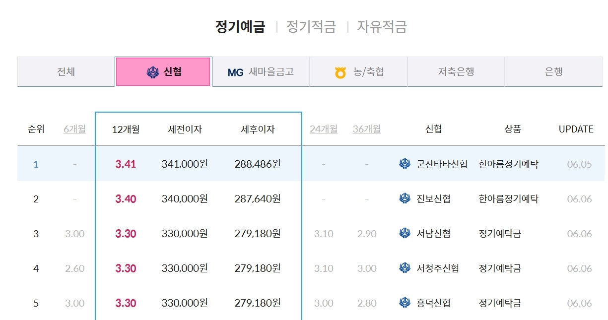 신협 정기예금 금리비교